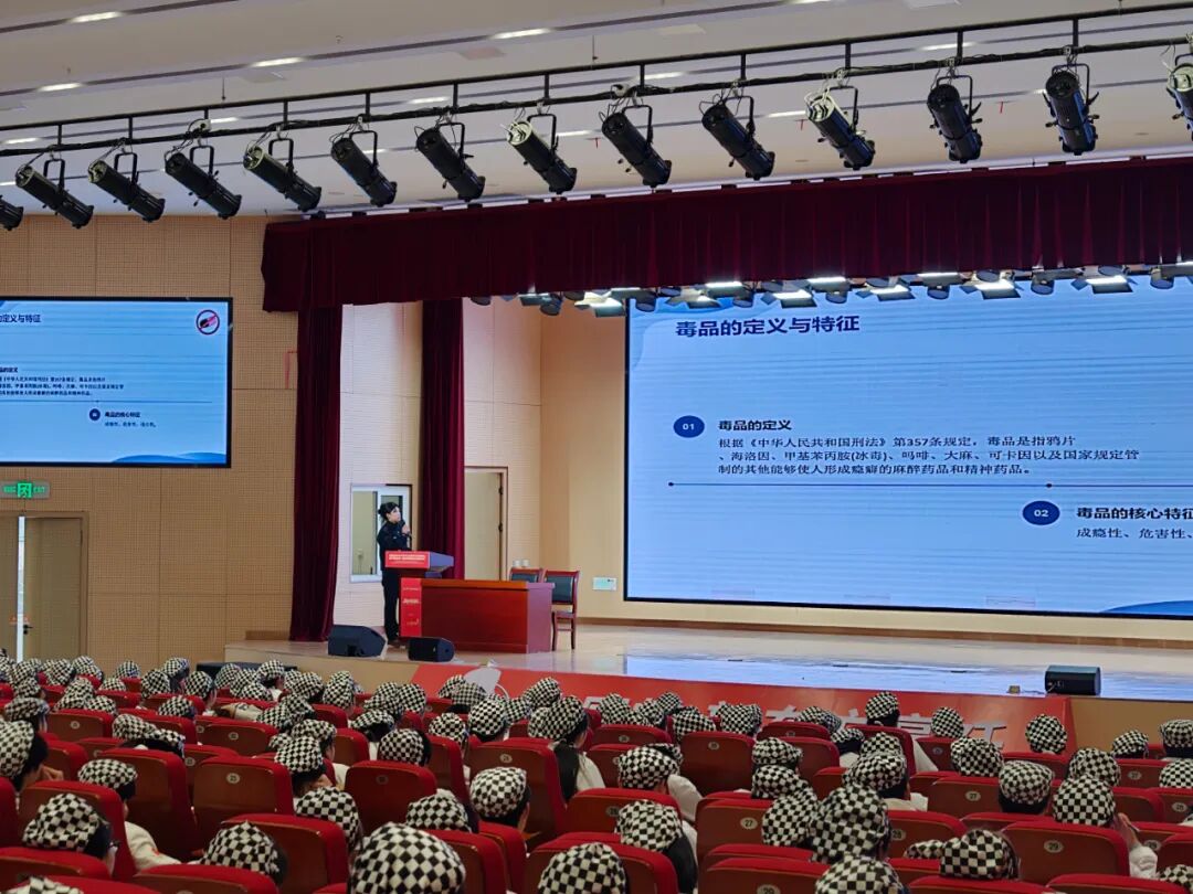 在毒品预防教育环节,民警详细讲解传统毒品与新型伪装毒品的危害,揭露毒品对身体、家庭与人生的毁灭性影响,教育学生认清毒品陷阱、增强防毒意识,牢固树立 “珍爱生命、远离毒品” 的坚定理念。