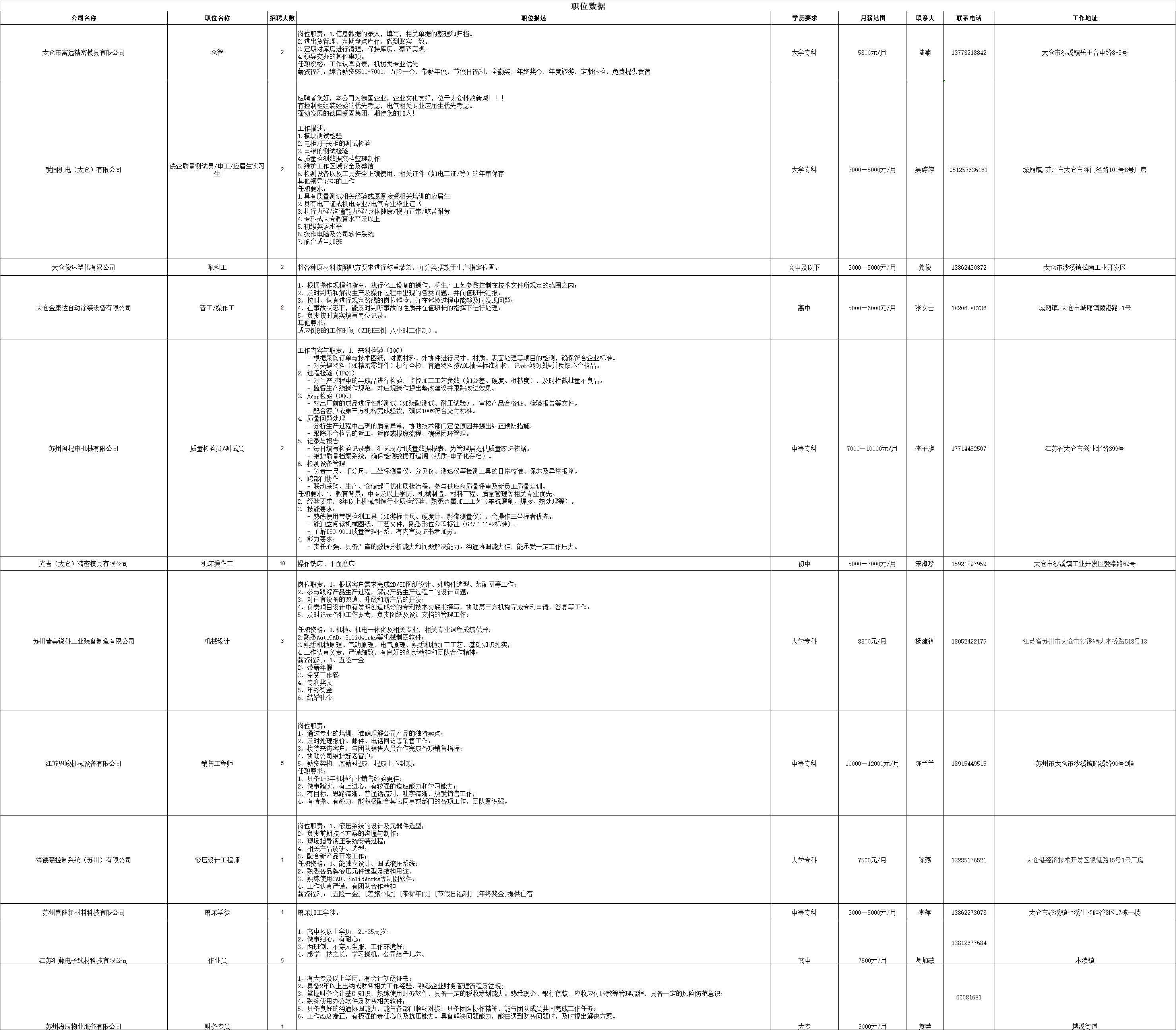 线上招聘(苏州市用工信息)(第471期)