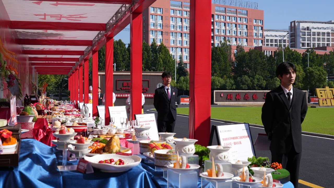 秋阳和煦,菜香盈园。10月22日,安徽新东方烹饪高级技工学校第二届“青春向党、强国有我”宴席团体赛在如火如荼的角逐中圆满落幕。这不仅是一场技能竞技的盛宴,更是一堂生动的“行走的思政课”。从学子们灶台前的匠心烹制,到裁判组的专业评审,再到校长的亲切品鉴,整个赛场洋溢着激情、严谨与温暖的育人氛围。