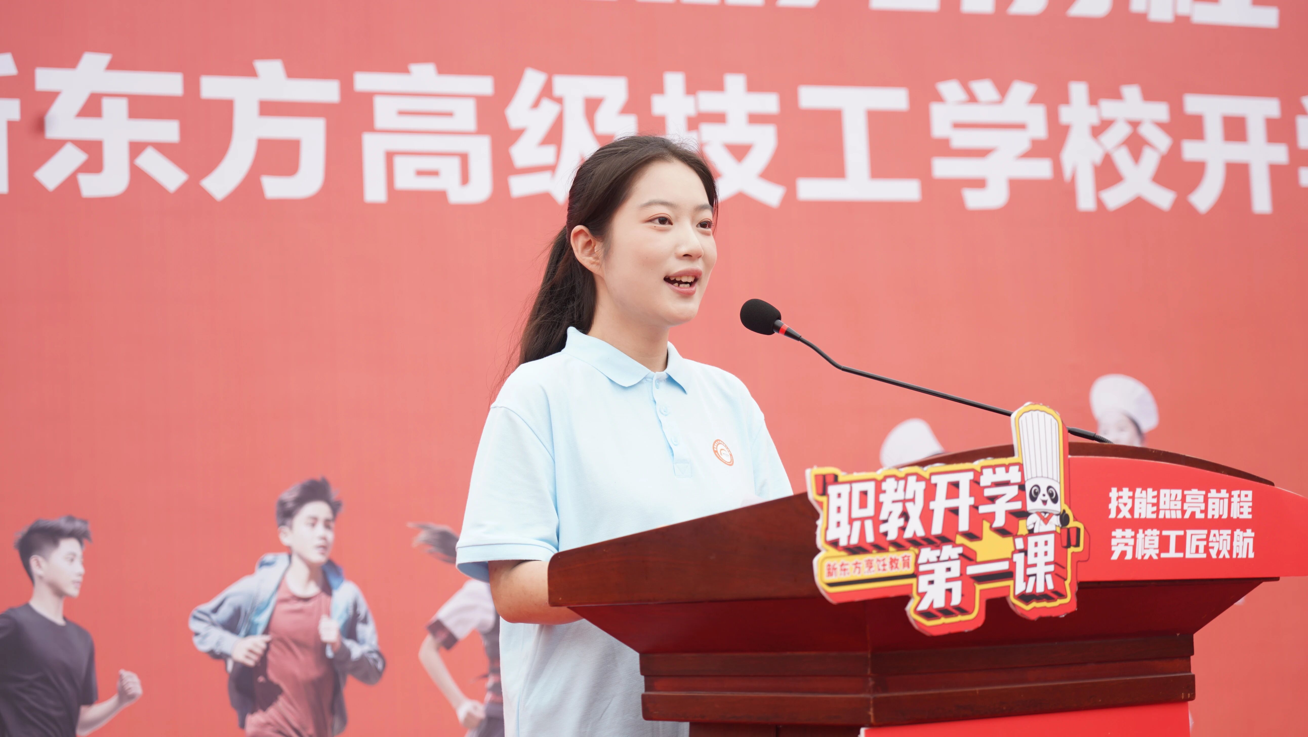 学生代表叶孟瑞同学随后发言,她分享了自己对新学期的期待与规划,表达了将以劳模工匠为榜样,努力学习、提升自我的决心,展现出新时代青年学子的朝气与担当。